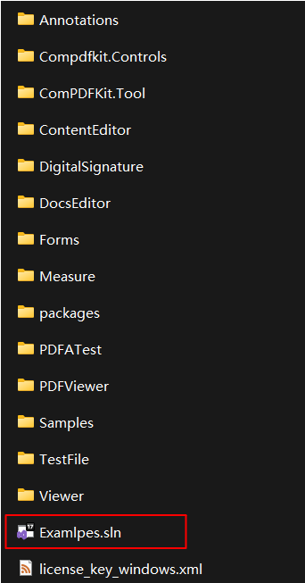 ComPDFKit PDF SDK for Windows provides multiple demos in C# for developers to learn how to call the SDK on Windows. You can find them in the "Examples" folder.